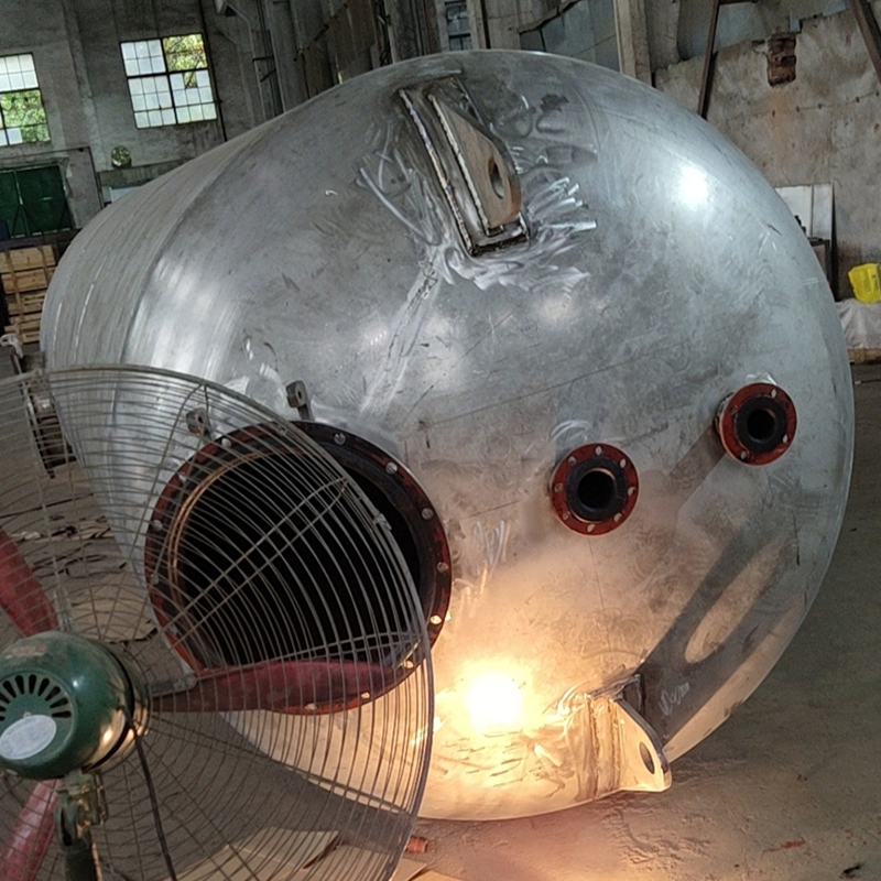 鋼襯橡膠離子交換柱采用本公司大型硫化釜內(nèi)硫化(即加壓蒸氣硫化),不采用本體硫化,使膠板與鋼基體、膠板與膠板之間結(jié)合成一體。橡膠材料采用高檔耐酸耐堿耐油熱硫化硬質(zhì)低鈣鎂橡膠板,配套膠粘劑采用進(jìn)口的原裝膠水。產(chǎn)品具有無焊接縫、不滲漏、無毒性、抗老化、抗沖擊、耐腐蝕、壽命長、符合衛(wèi)生標(biāo)準(zhǔn)等優(yōu)點(diǎn)。它彌補(bǔ)了全塑滾塑儲(chǔ)罐剛性強(qiáng)度差,不耐壓,耐溫差的缺點(diǎn)。產(chǎn)品內(nèi)襯面平整、光滑、堅(jiān)固,與傳統(tǒng)的鋼襯塑料板儲(chǔ)槽、鋼襯玻璃鋼貯槽相比,具有更良好的耐腐蝕、不滲漏、不剝離、耐磨損、可耐一定壓力、可耐較高溫度、壽命更長等優(yōu)點(diǎn),其價(jià)格低于同規(guī)格的傳統(tǒng)儲(chǔ)罐,是儲(chǔ)存腐蝕液體的理想容器。因而是一種極為優(yōu)異的耐腐蝕儲(chǔ)罐容器。