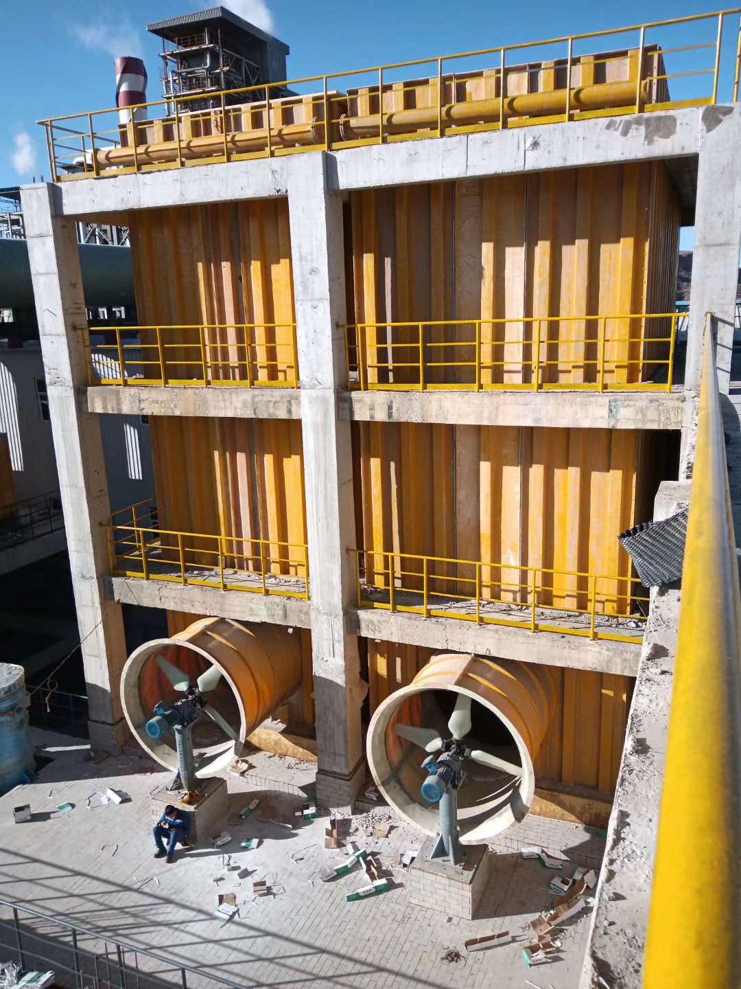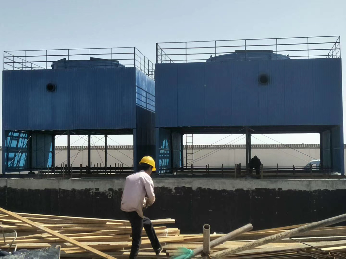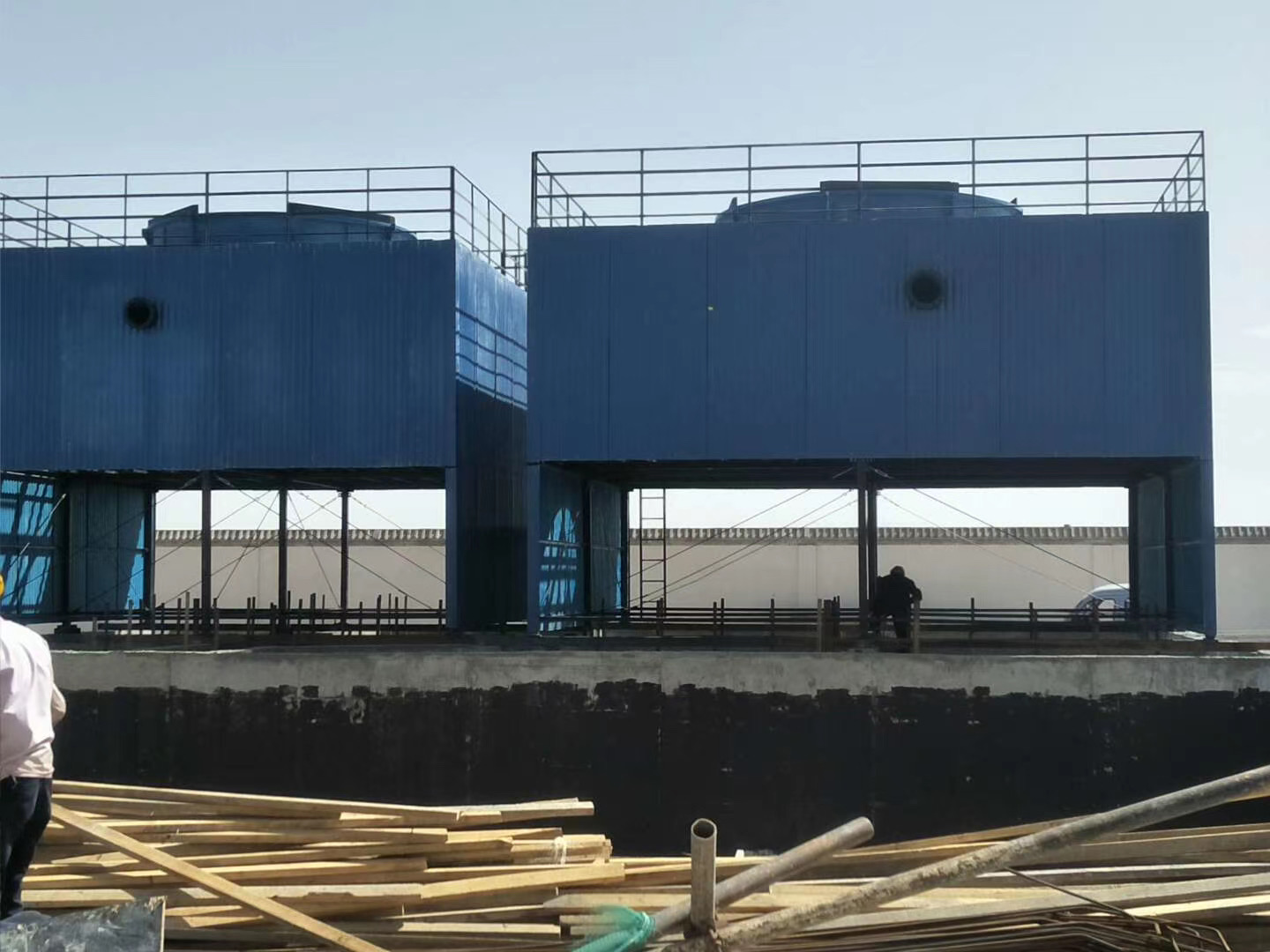 我公司生產(chǎn)的玻璃鋼鼓風(fēng)式冷卻塔由塔體、大梁、捕滴裝置、支撐格柵、布液裝置、風(fēng)機(jī)、導(dǎo)風(fēng)筒等部分組成。其設(shè)計(jì)主要圍繞著冷卻效果、防結(jié)晶、防腐蝕、捕滴效果進(jìn)行,主要技術(shù)特點(diǎn)在于合理、有效地解決冷效及冷卻液在設(shè)備中的結(jié)晶問題,并作適當(dāng)?shù)倪x材,以確保防腐蝕及防止電解液漂液現(xiàn)象。